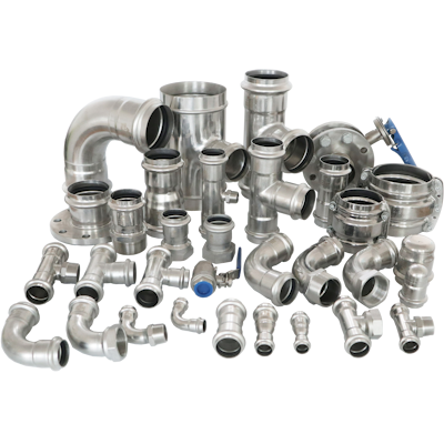 AP Stainless press fittings don’t require expensive tooling and can be installed in under 1 minute.