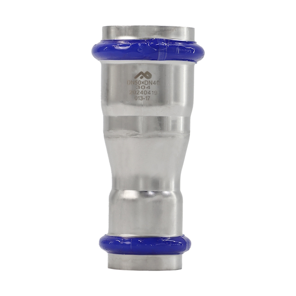 The Reducing Pipe to Pipe Joint is a stainless steel fitting designed to connect two pipes of different diameters in industrial systems. Ideal for contractors managing fluid or gas lines, this press-fit joint provides a secure, leak-proof transition between pipe sizes without welding or threading. Simply insert each pipe into the joint and press to seal—saving time and labor. Made from corrosion-resistant 304 stainless steel, it’s suitable for a wide range of applications including water, steam, air, and chemicals. Elastomeric seals absorb vibration and thermal expansion, ensuring long-term reliability in demanding environments.