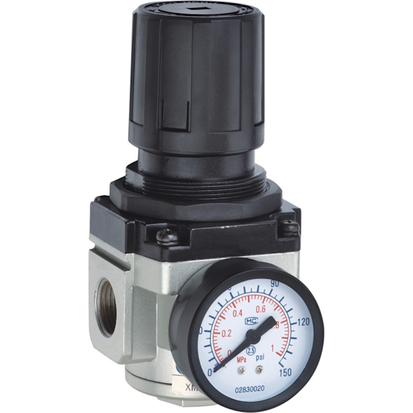 The Compressed Air Regulator is designed to provide precise downstream pressure control for aluminum and steel compressed air systems. It ensures stable pressure, reduces fluctuations, and protects equipment from over-pressurization. This model comes with a separate pressure gauge for easy monitoring.